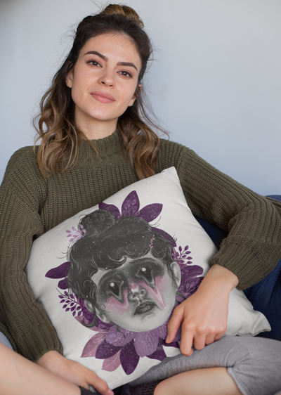 Artistic Decorative Pillow, Boho Home Decor, Unique Accent Cushion, Gift for Mom, Sofa Pillow with Floral Design