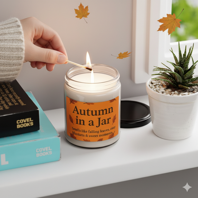 Autumn Scented Candle, Cozy Home DΓ©cor, Fall Fragrance, Gift for Her, Relaxation, Seasonal Decor, Autumn in a Jar 9oz